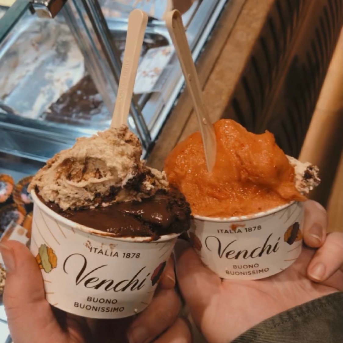 If you don’t like any bitterness, then go for the milk chocolate, which is also amazing. Something about the dark chocolate here is so delicious, though. Pair it with a sweet flavor like biscotto or fragola!
