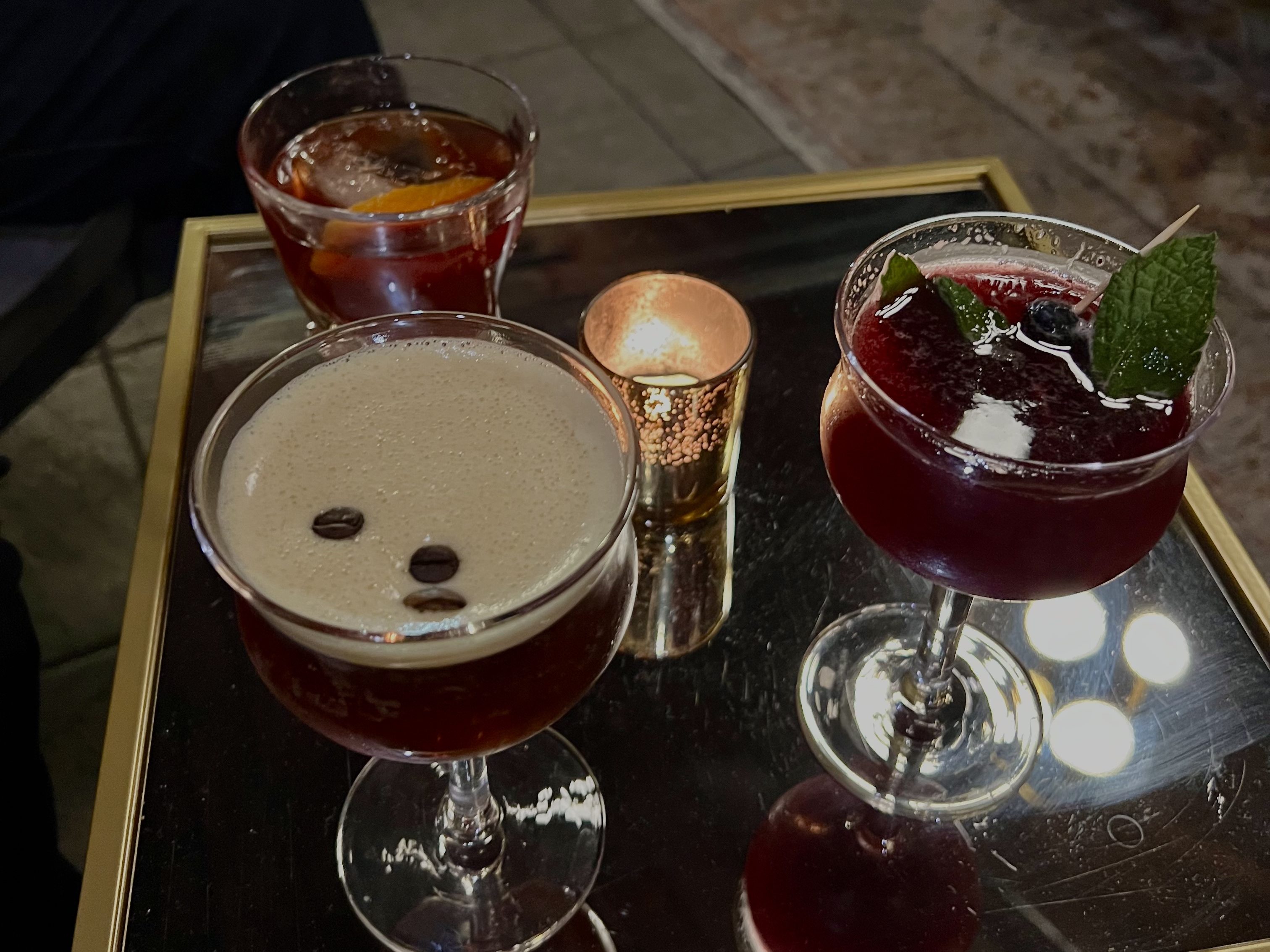 The Golden Monkey Lounge opened in October of 2023, and quickly gained local interest in its first year open. The lounge has an elevated yet relaxing atmosphere, with a sleek, black interior, low-lighting, and approachable seating including couches and high-top tables. Tables each have family games including Cards Against Humanity, What Do You Meme, and you’ll even find cornhole on the back patio in the warmer months.